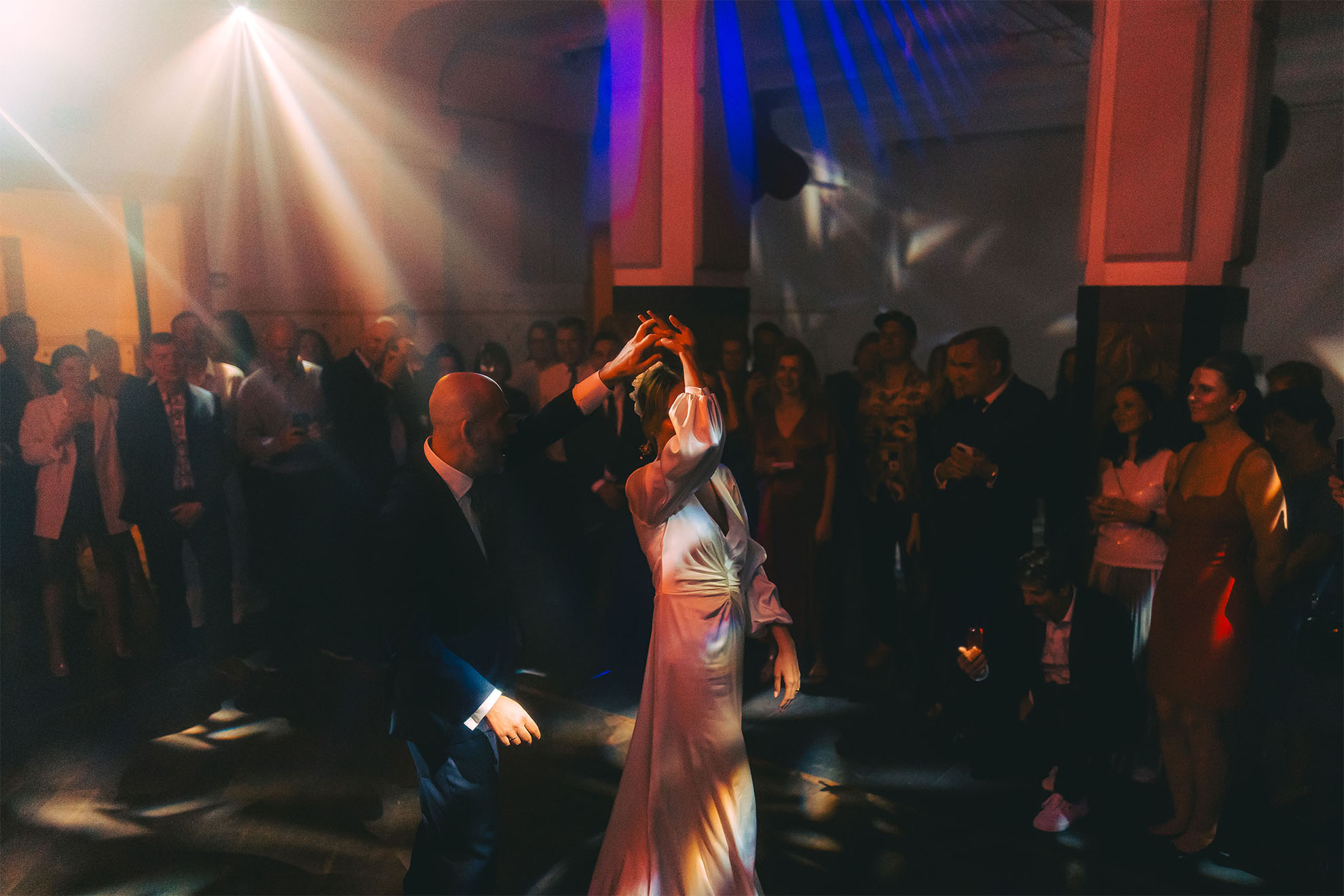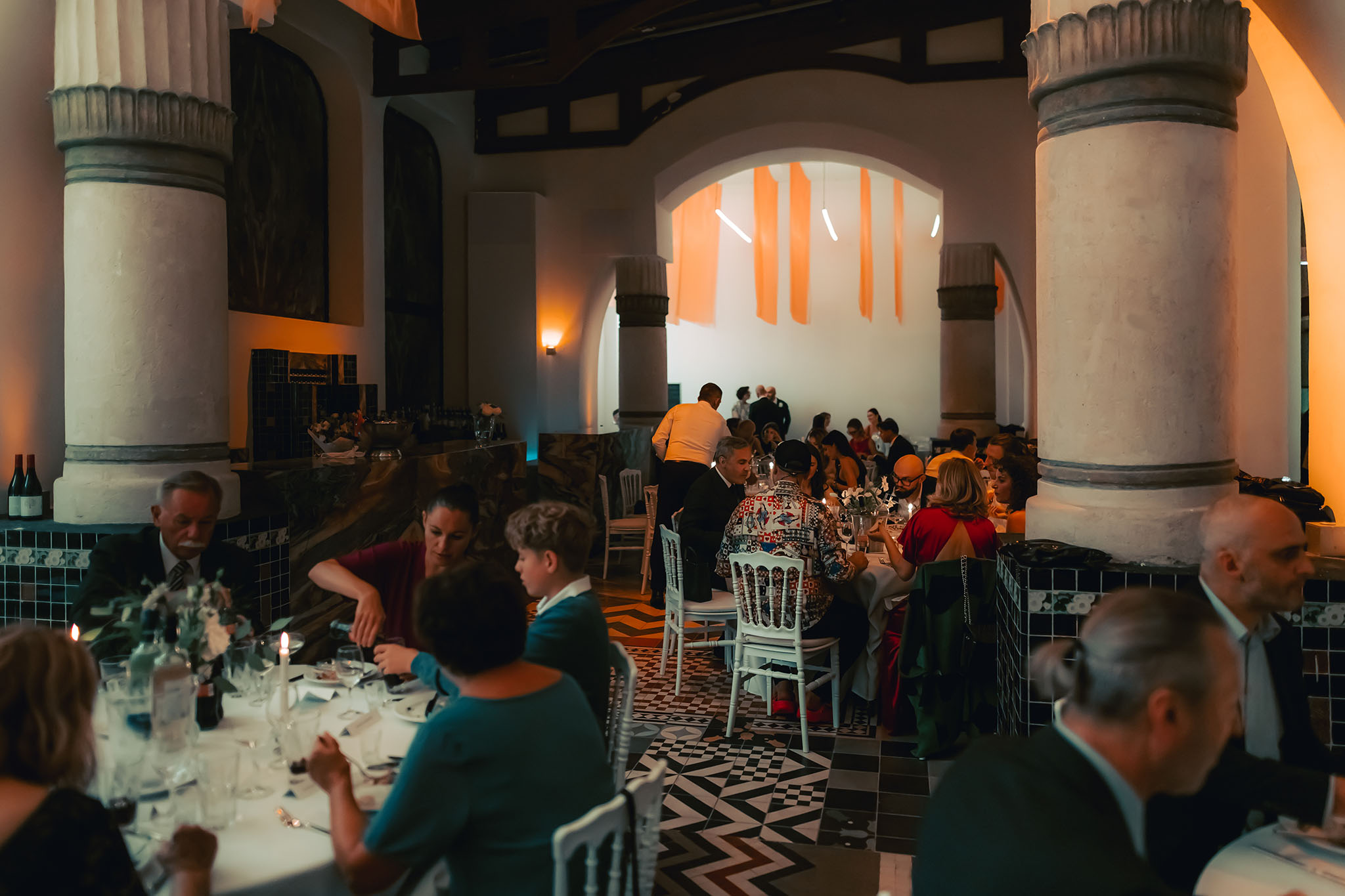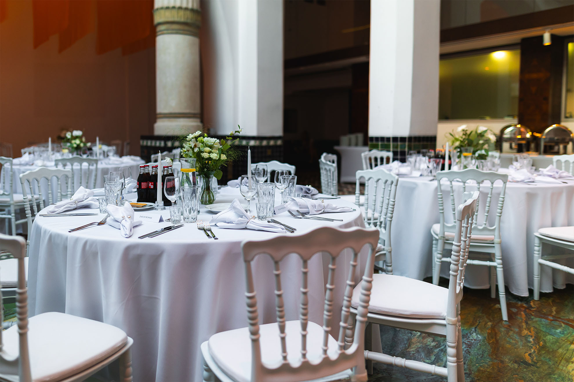 Modularny, kilkupoziomowy plan lokalu umożliwia realizację złożonych weselnych scenariuszy.